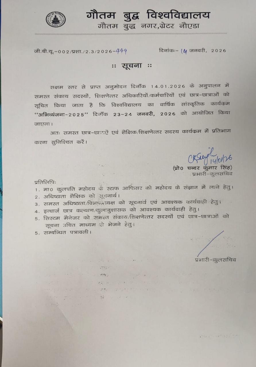 Notice regarding Abhivyanjana-2025 scheduled to be held on 23-24 January 2026